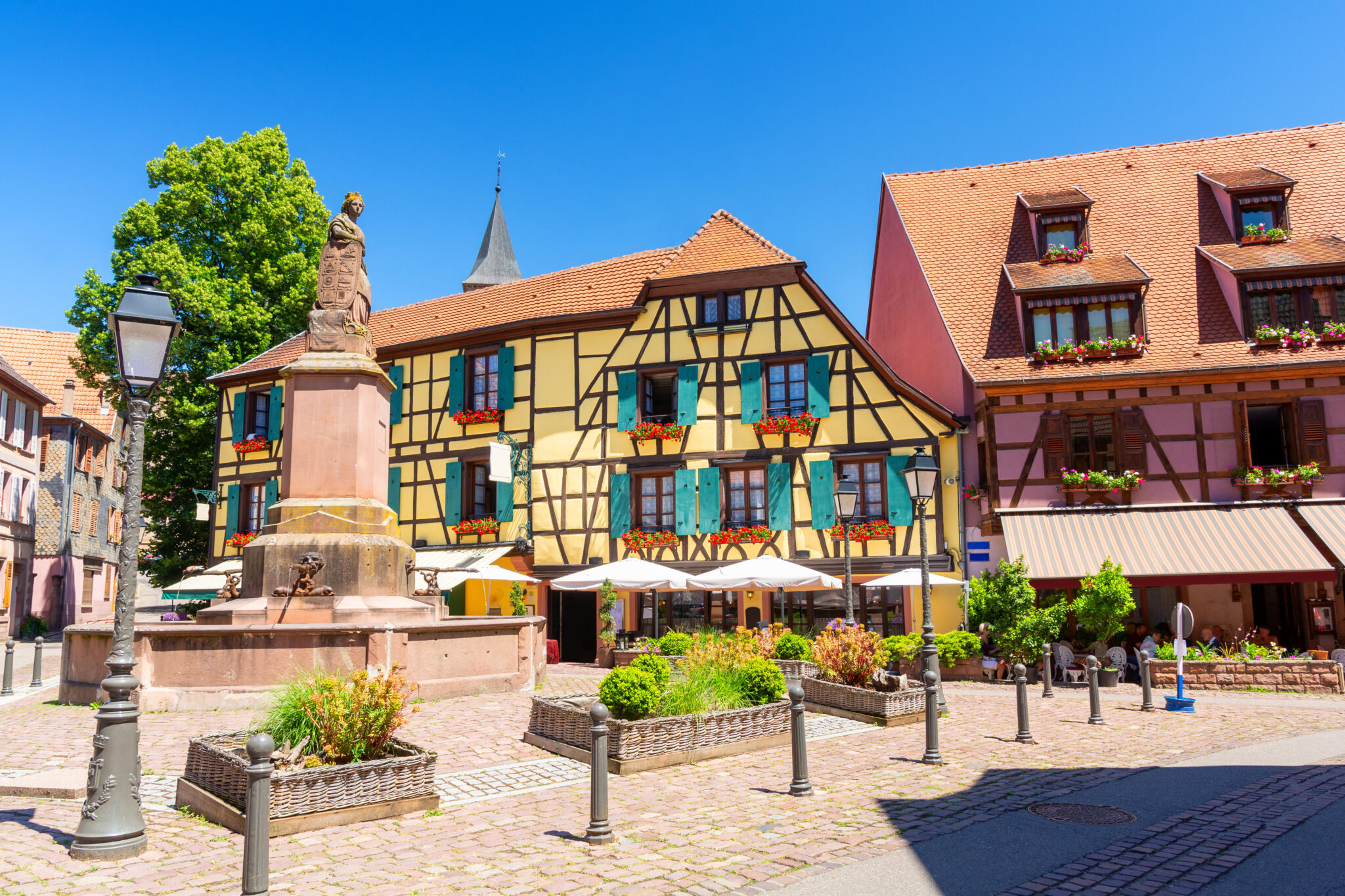 Eguisheim is één van de mooiste dorpen van de Elzas. Struin door smalle geplaveide straatjes met oude vakwerkhuizen en vele bloemen in dit sprookjesachtige dorpje.